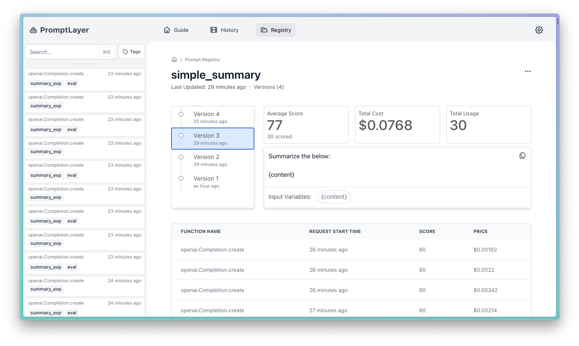 We live in the real world, so money matters. Building a prod LLM system means managing price. Some LLMs are cheaper than other LLMs. Some prompts are cheaper than other prompts. Each request history page will tell you its individual cost: