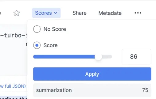 Every PromptLayer request can have multiple “Scores”. A score is an integer from 0-100.